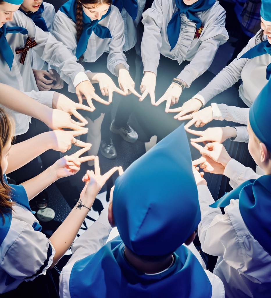 Каждый член отряда носит синюю пилотку и галстук цвета небесного синего оттенка, подчеркивая принадлежность к Гагаринскому движению и выражая уважение к первому космонавту планеты.