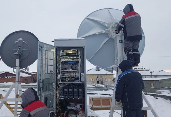 Отдельной задачей стало подключение станций к сети. Оптоволокна в этих краях нет, поэтому специалисты компании организовали связь через спутниковый канал. Это технически сложное и дорогостоящее решение, которое требует специального оборудования и точной настройки в условиях Крайнего Севера.