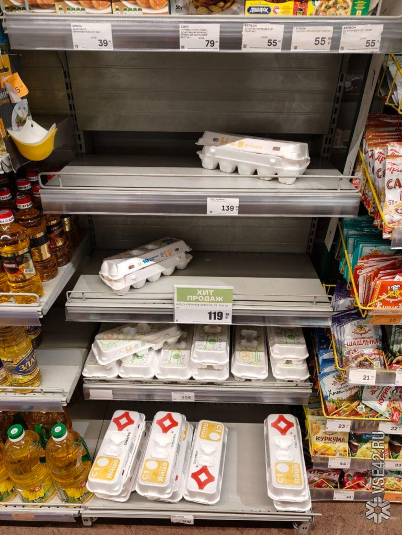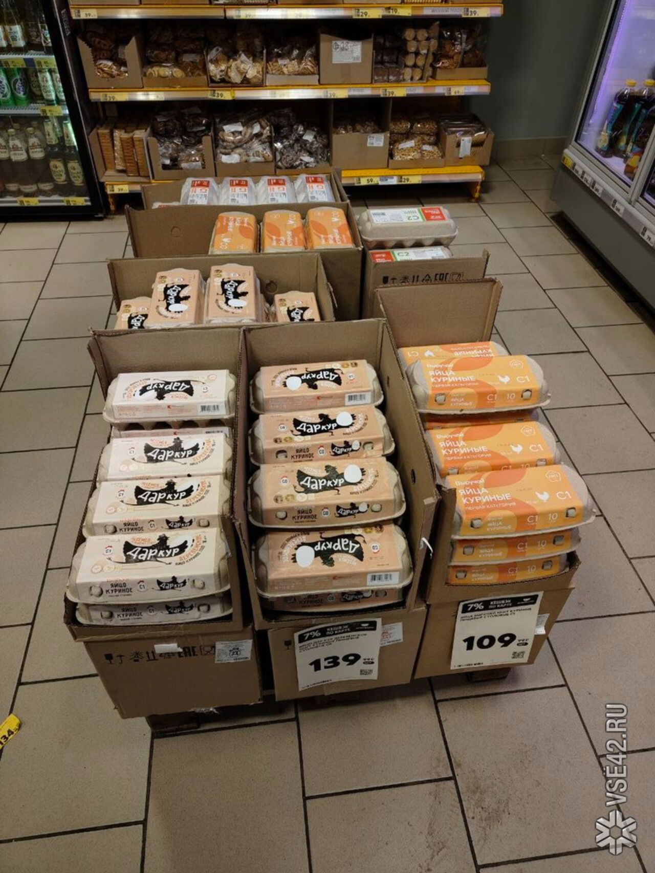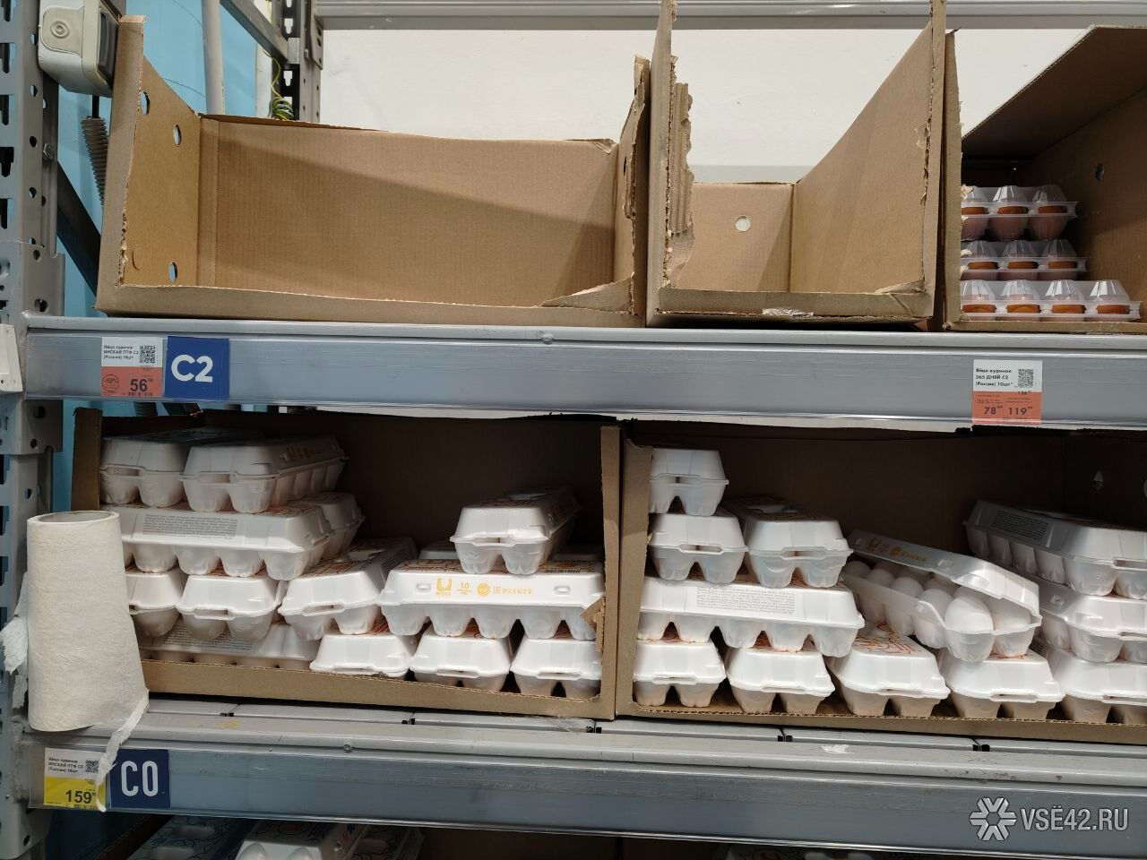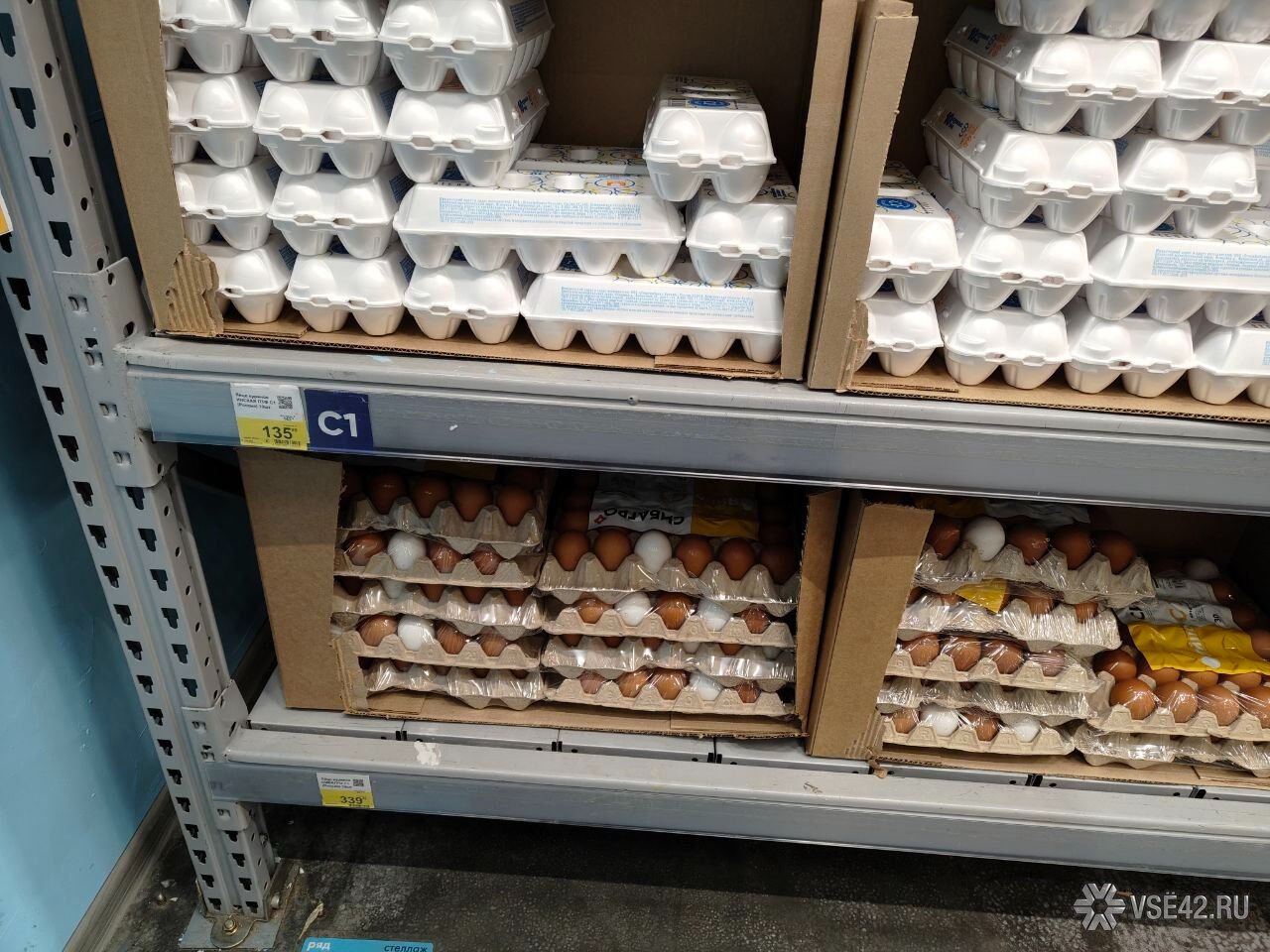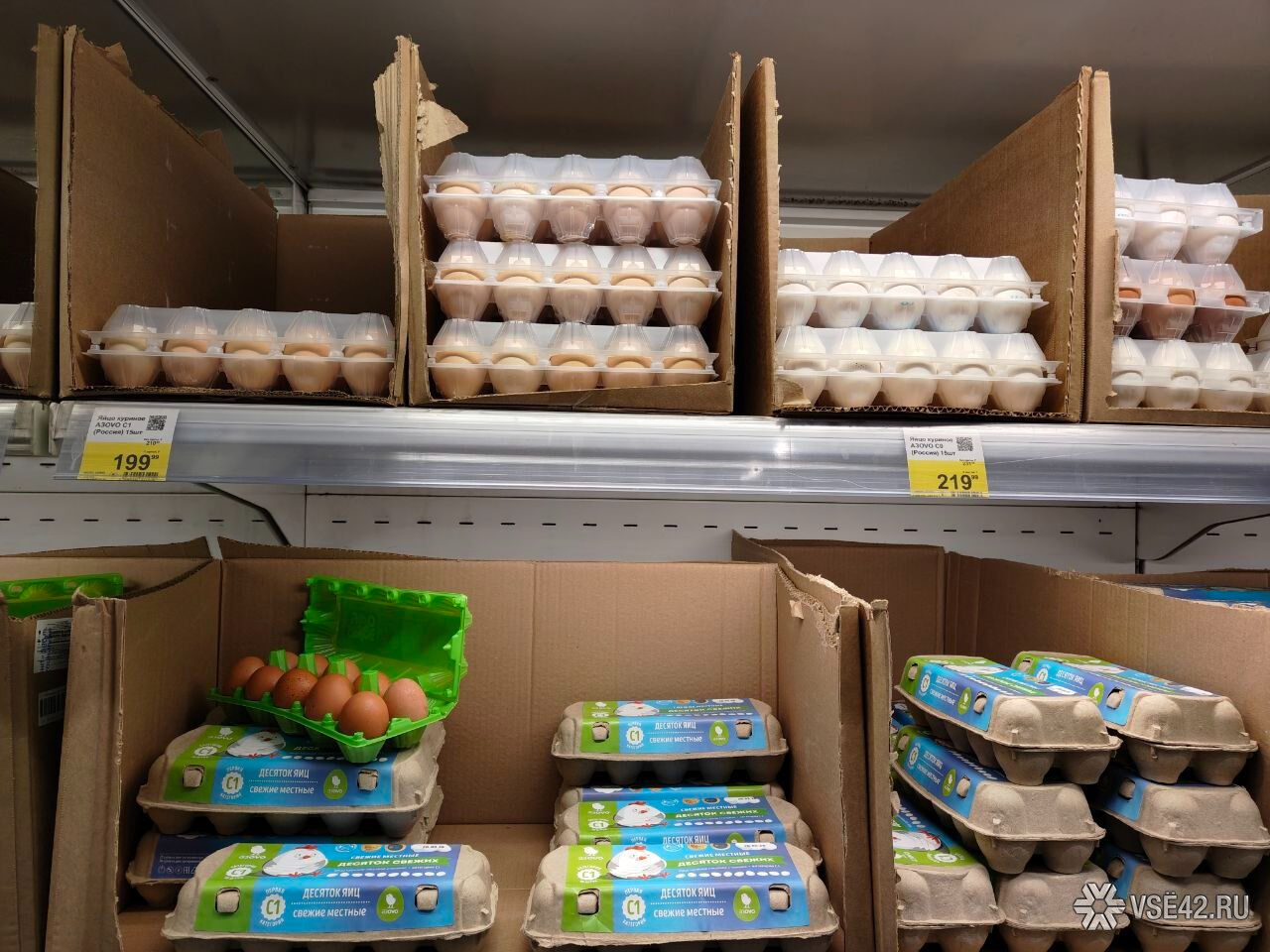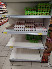 Корреспондент VSE42.Ru накануне прогулялся по разным кемеровским магазинам и проверил, почём реально в Кемерове продают десяток яиц. И от некоторых ценников ему стало не по себе.