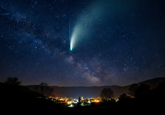 Некоторые люди опасаются, что Земля может пройти сквозь хвост кометы. Это действительно происходит – именно так и возникают метеорные потоки. Но хвост кометы – это крайне разреженный газ и мельчайшая пыль. Плотность вещества в нём в миллиарды раз ниже, чем в самом хорошем вакууме, созданном в земных лабораториях. Никакой опасности это не несёт.