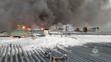 В Комсомольске-на-Амуре горит складское помещение на площади 3 500 квадратных метров.
