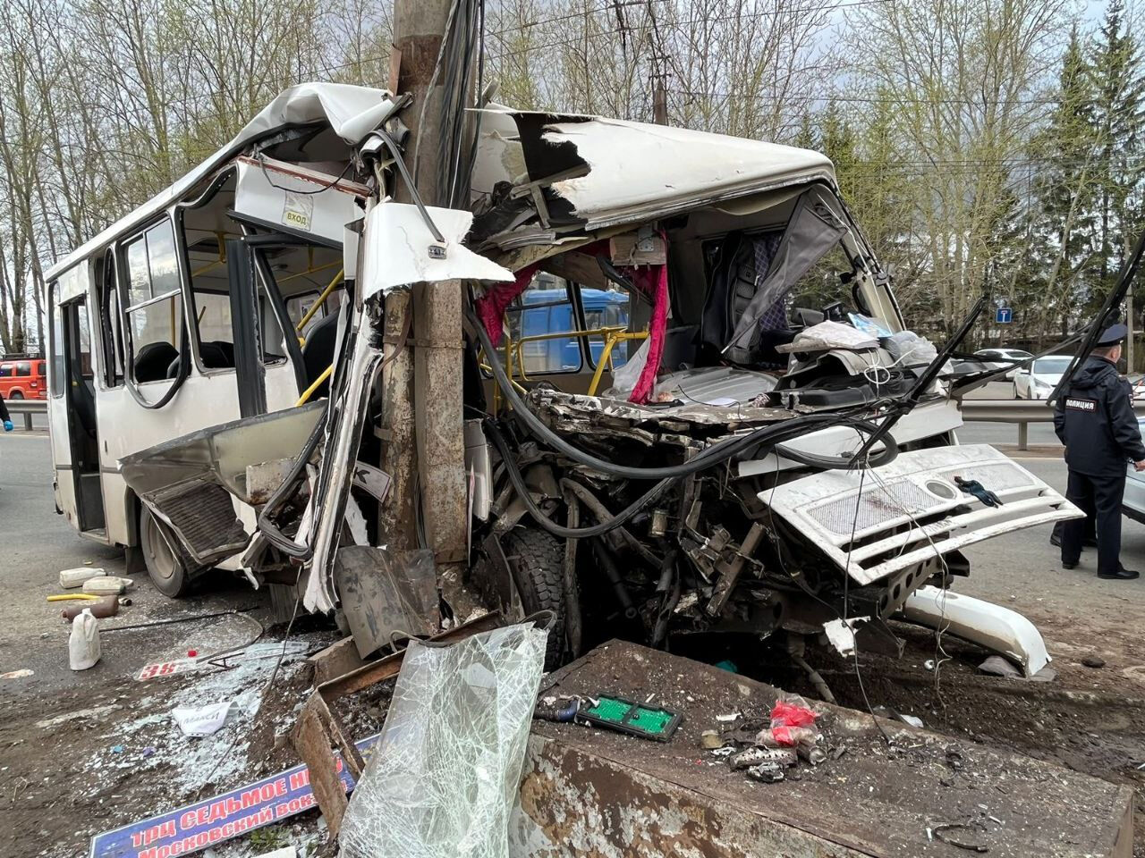 27 апреля в Кирове водитель автобуса ПАЗ совершил наезд на опору линии электропередач. В маршрутке находились пассажиры.