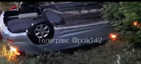 В одном из кузбасских городов произошло жесткое ДТП, в результате которого легковой автомобиль съехал с дороги и перевернулся на крышу.