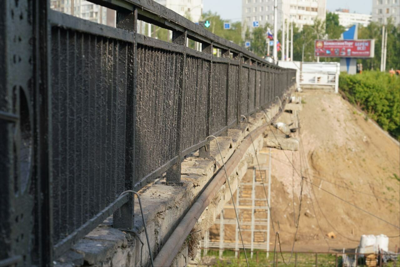 Отмечается, что сейчас продолжаются работы в подмостовой части сооружения, а также на пешеходном тротуаре моста и подходов к нему со стороны парка Жукова. Так, специалисты сняли старый асфальт на тротуаре и вскрыли кабельные трассы слаботочных сетей.