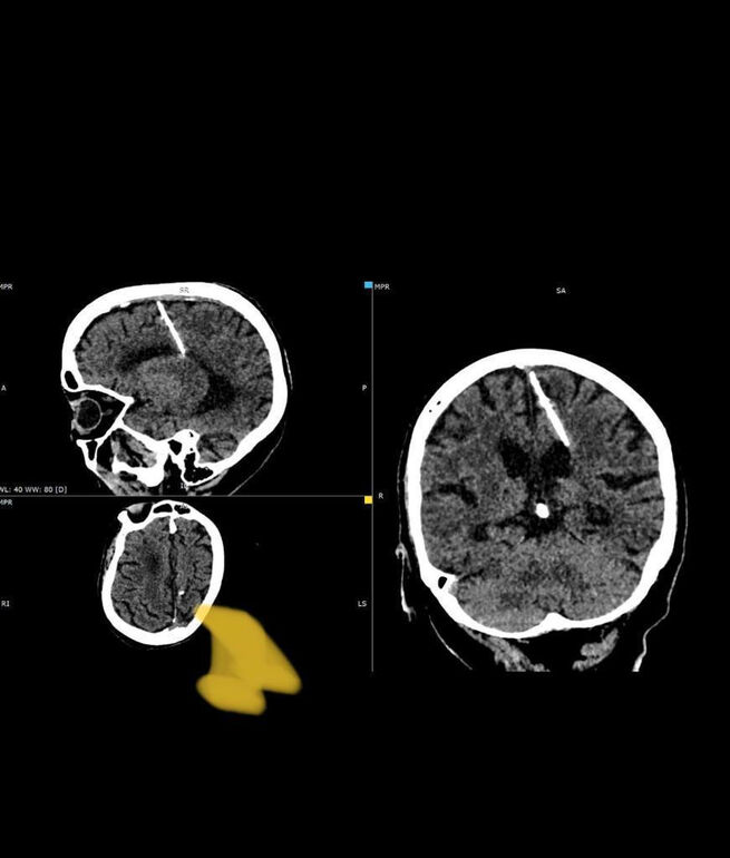 Головные боли ее никогда не мучили. Инородное тело было замечено только во время проведения компьютерной томографии. Извлекать иглу не стали, так как это могло ухудшить состояние пожилой женщины. В настоящий момент здоровью пациентки ничего не угрожает, за ней наблюдает лечащий врач, сообщает региональный Минздрав.