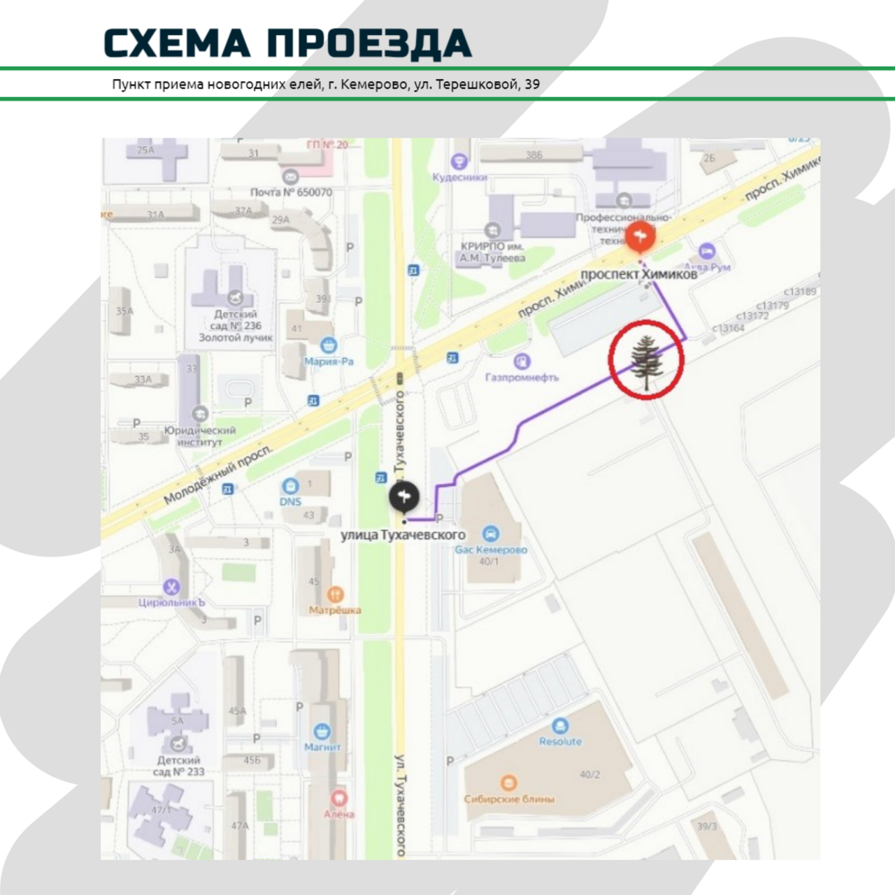 С 9 января в Кемерове заработал пункт приема елок. Он находится на улице Терешковой, 39. Найти объект можно по координатам 55.32873, 86.136765.