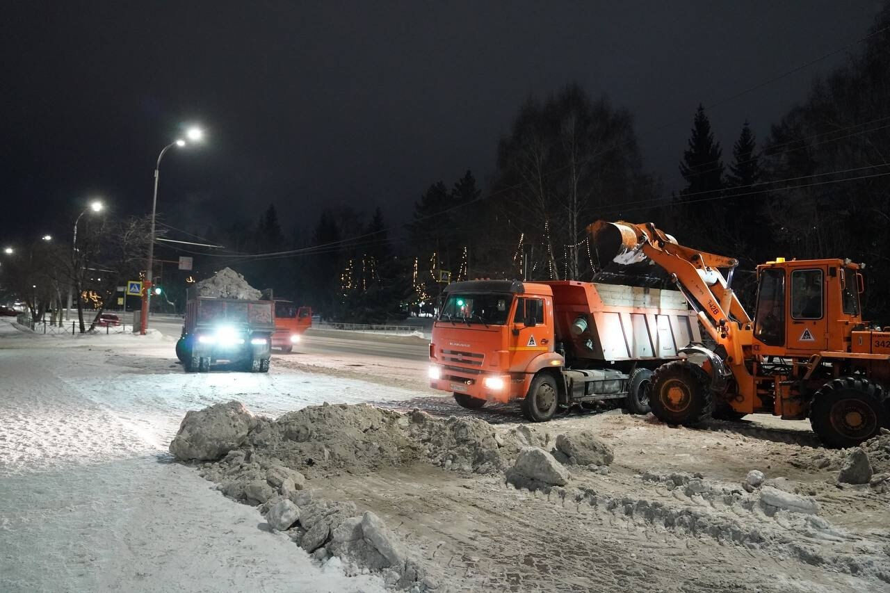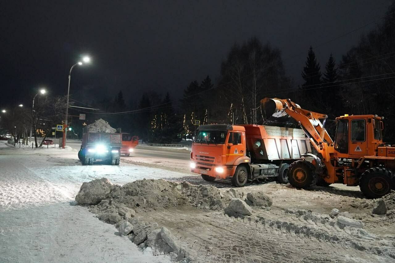 Рабочие вывезли около 23 000 кубометров снега с улиц Кемерова за выходные