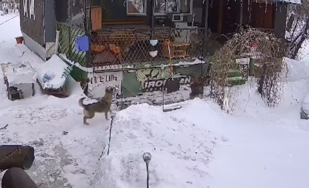 В Новокузнецке кошка стала жертвой стаи собак. Момент нападения попал на видео.
