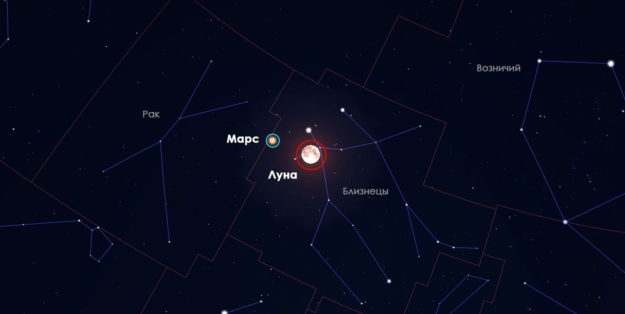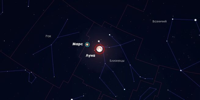 В ночь на 14 января на звездном небосводе появятся Луна и Марс в непосредственной близости друг от друга. Во всяком случае, так будет казаться при наблюдении с Земли.