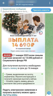 Отметим, ссылки в посте ведут не на официальные порталы ведомств, а на подозрительный Telegram-канал.