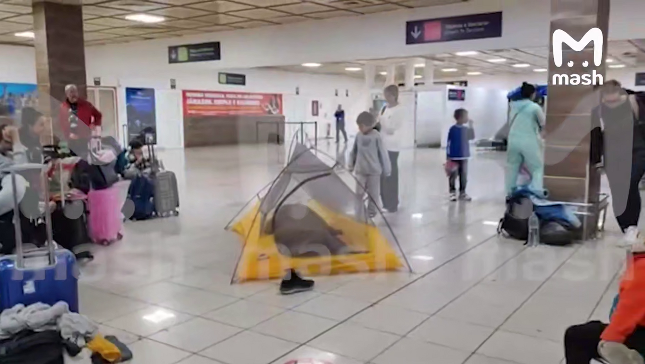 Российские туристы, уже более 30 часов ожидающие перелета в Москву, разбили палаточный лагерь в аэропорту Кубы.