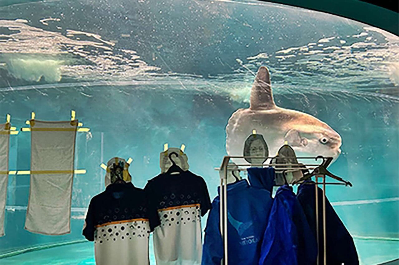 Сотрудники океанариума в Японии обклеили аквариум лицами людей ради настроения рыбы