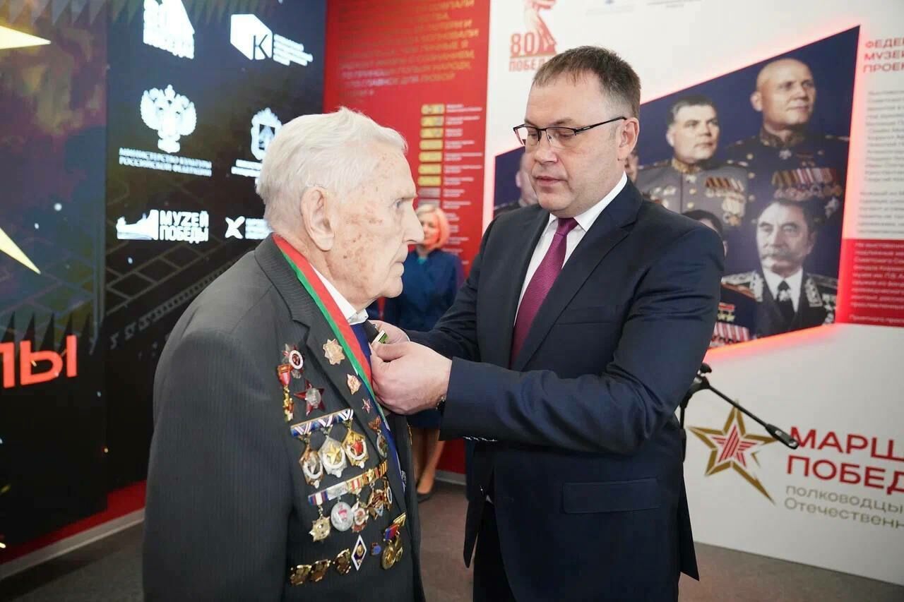 Фронтовик Анатолий Терехов получил из рук губернатора Ильи Середюка нагрудный знак "Почетный гражданин Кузбасса". Торжественное мероприятие прошло в отделе военной истории Кузбасского краеведческого музея, где в пятницу, 24 января, открылась выставка с личными вещами советских маршалов.