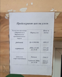 Судя по прейскуранту, за тонну рядового угля там просят 1 095,12 рубля, сортового – 1 717,20 рубля. Сверхнормативные цены: 3 544,13 рубля за рядовой и 4 363–4 662 рублей за сортовой.