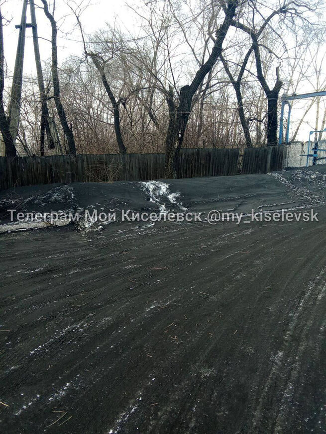 Черный как ночь снег возмутил жительницу Киселевска. Толстый слой темной массы плотно покрыл территорию города.