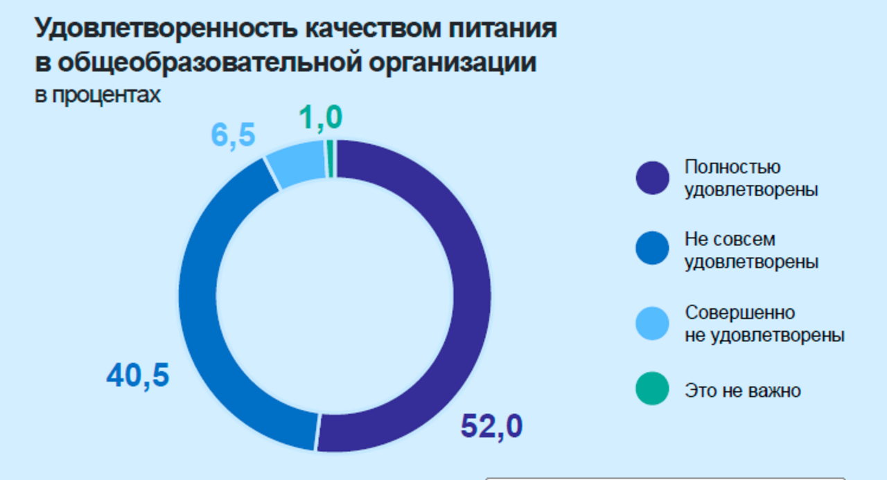 Качеством питания всецело довольны 52%, не совсем довольны – 40,5%, вообще не довольны – 6,5%, а для 1% это не важно.