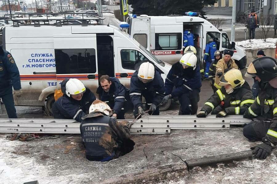 Земля провалилась прямо под ногами мужчины в Нижнем Новгороде. Он упал в глубокую яму.