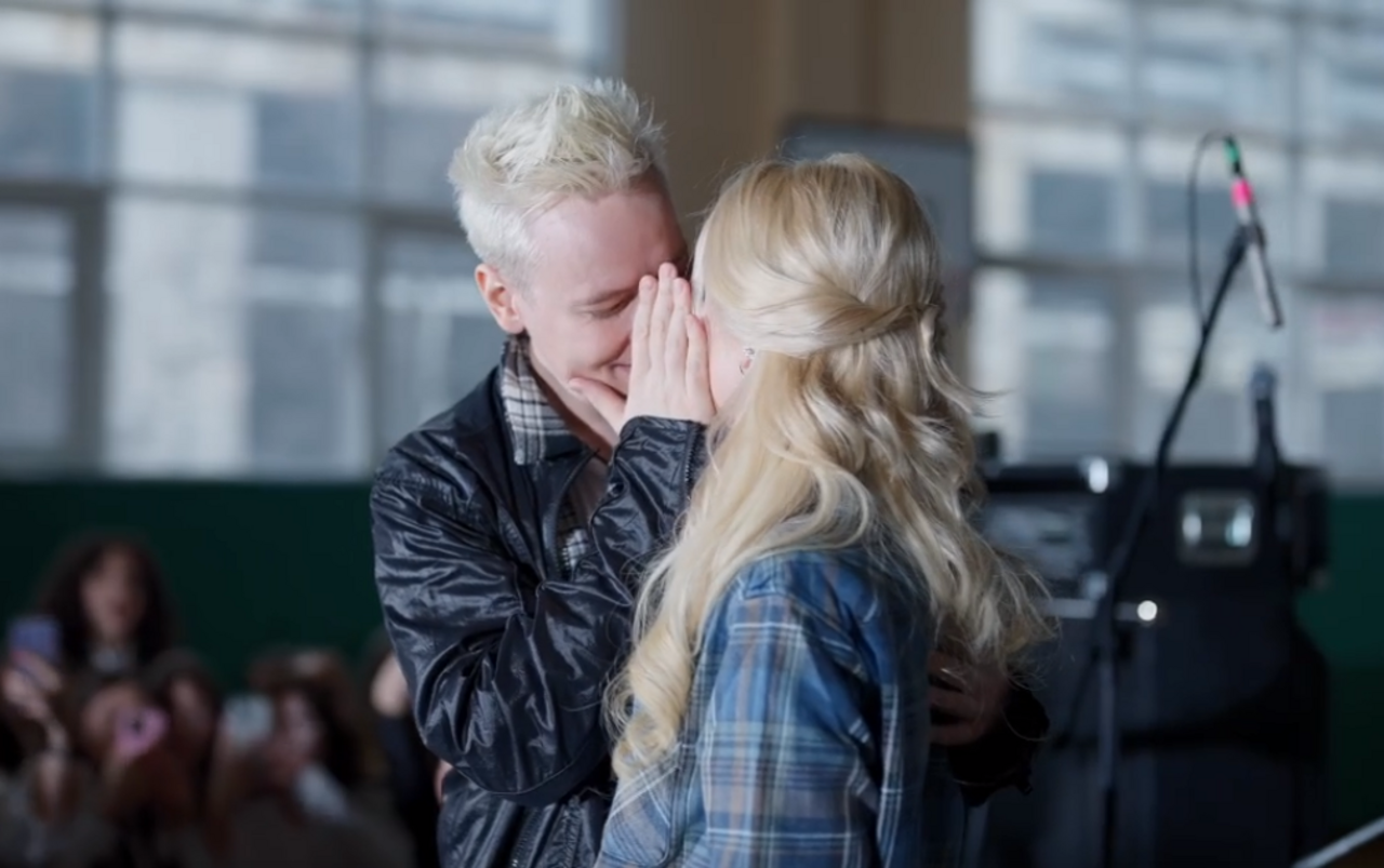 Ярослав Дронов опубликовал клип на песню "Я останусь с тобой", главными героями которого стали он и Екатерина Мизулина. Они, судя по кадрам, находились на сцене в московской школе, где произошел их "поцелуй".