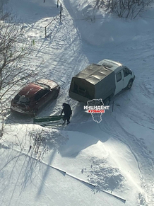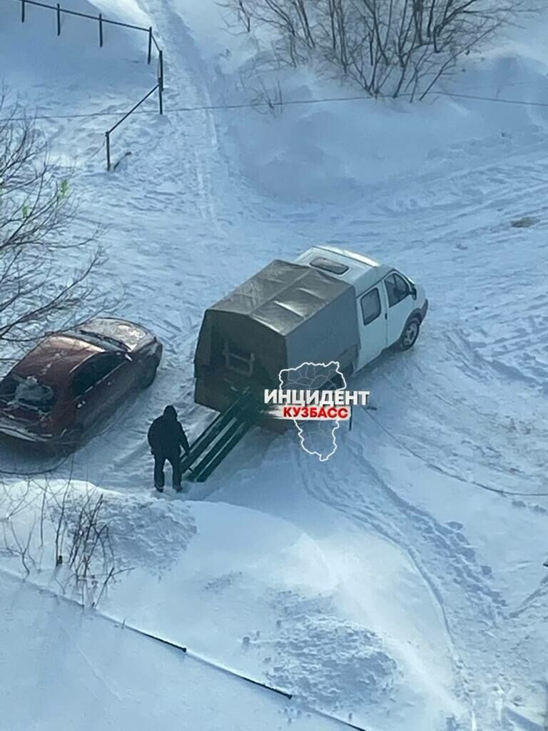 В Кемерове неизвестный вывез из двора дома скамейку, погрузив ее в свой грузовик. Это случилось днем.