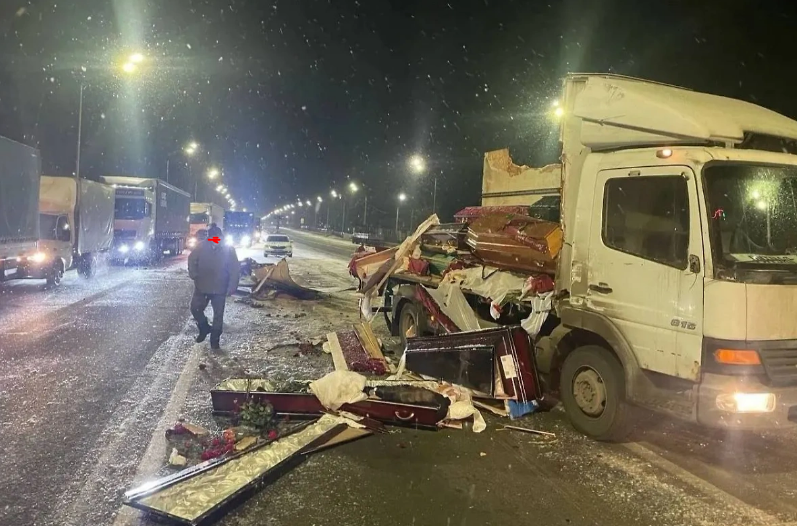В какой-то момент машина не выдержала интервал с фурой, проезжающей мимо, в результате чего столкнулась с иномаркой Lada Granta. В результате аварии часть гробов рухнула на асфальт и разбилась – трупы оказались на проезжей части.