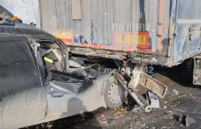 Заметив аварии впереди, водитель автомобиля КАМАЗ с полуприцепом начал замедляться. По предварительной информации, скорость автомобиля LADA Largus, двигавшегося следом, не позволила водителю своевременно остановиться. В итоге легковушка залетела под грузовик, 57-летний мужчина, который был за рулем, погиб.