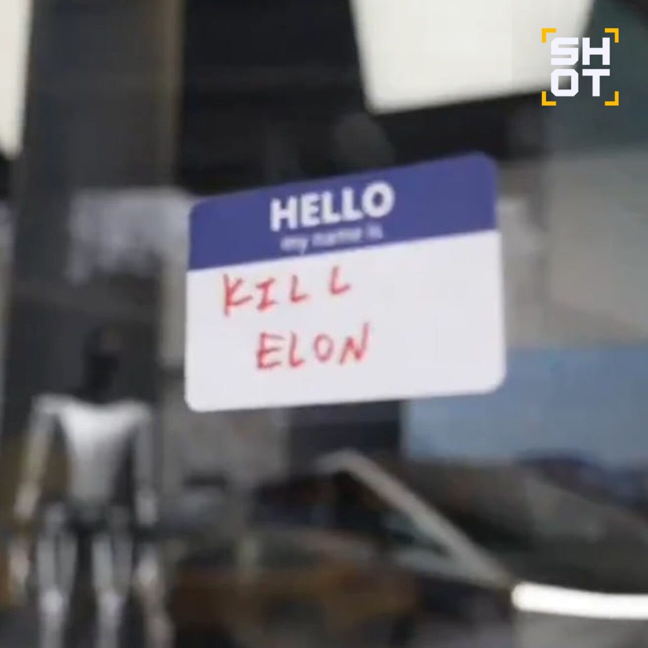Злоумышленники скрылись с места происшествия, но оставили стикер, надпись на котором гласит "Убейте Илона".