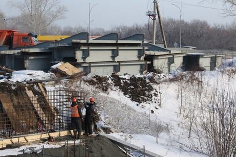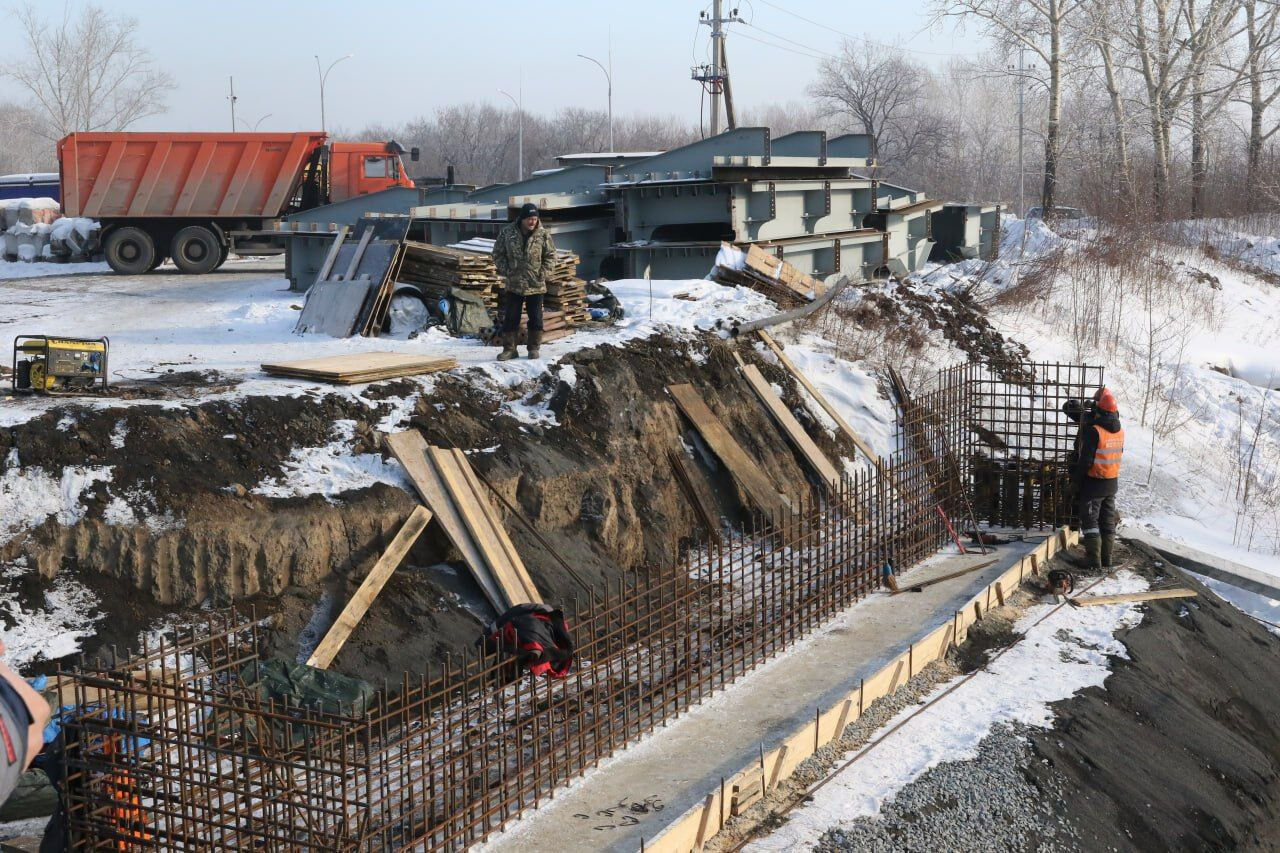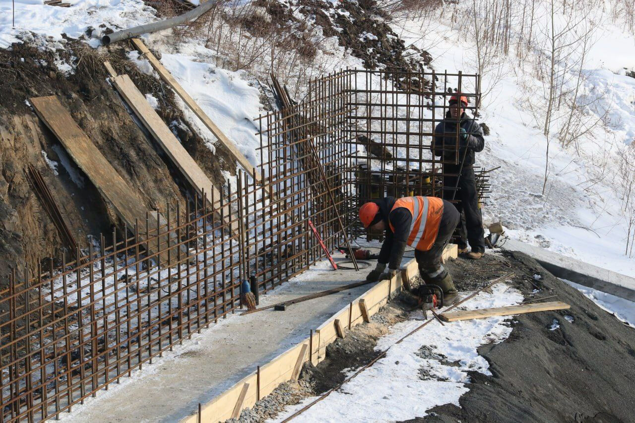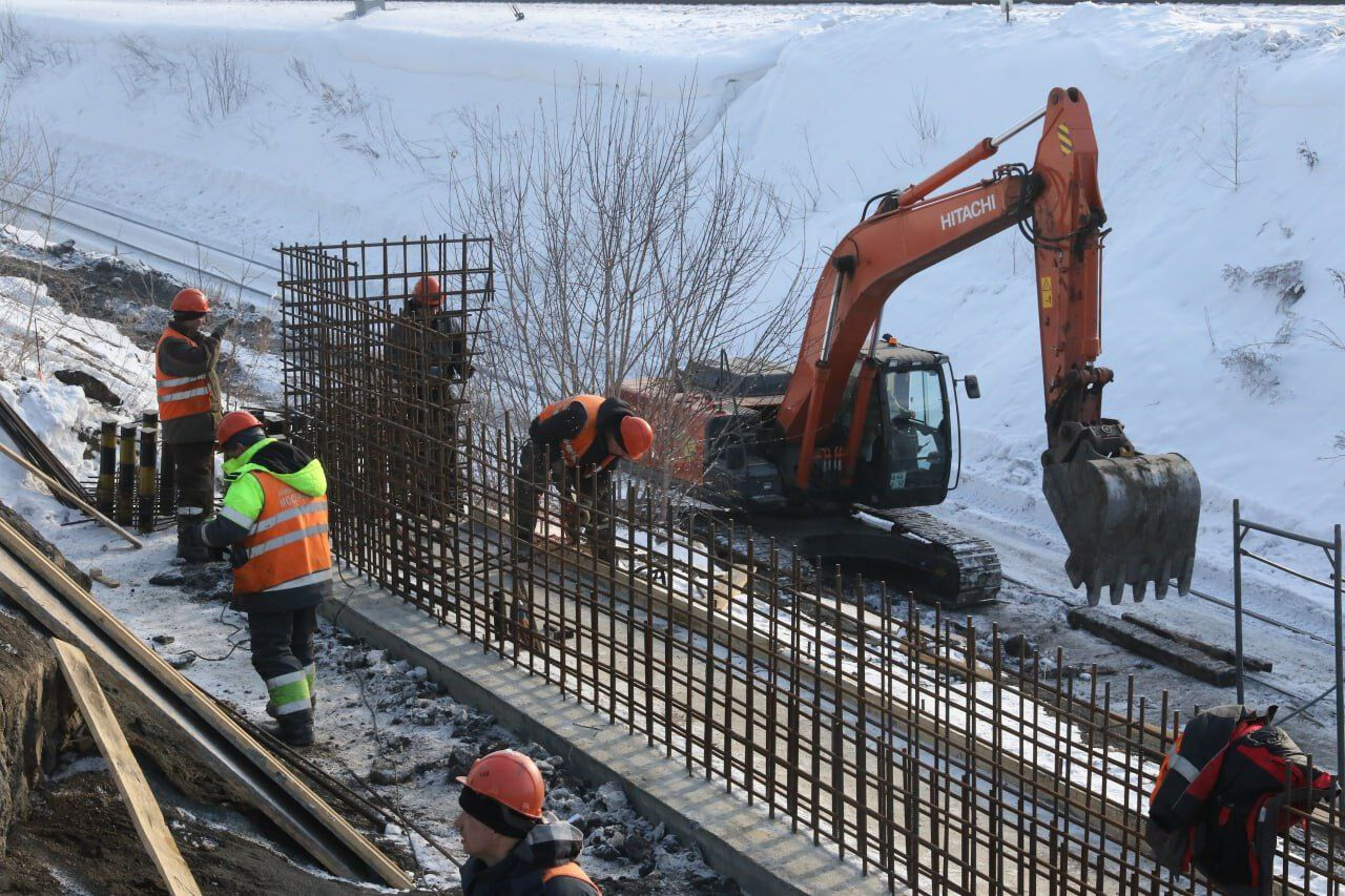 Сейчас рабочие занимаются бетонированием подпорных стенок и параллельно с этим готовят арматурный каркас колонн, на которые встанет мост. Когда монолитные работы будут закончены, строители смогут перейти к монтажу. Также там планируется уложить дорожное полотно, сделать перильное и барьерное ограждение. Завершить все работы планируется к маю.