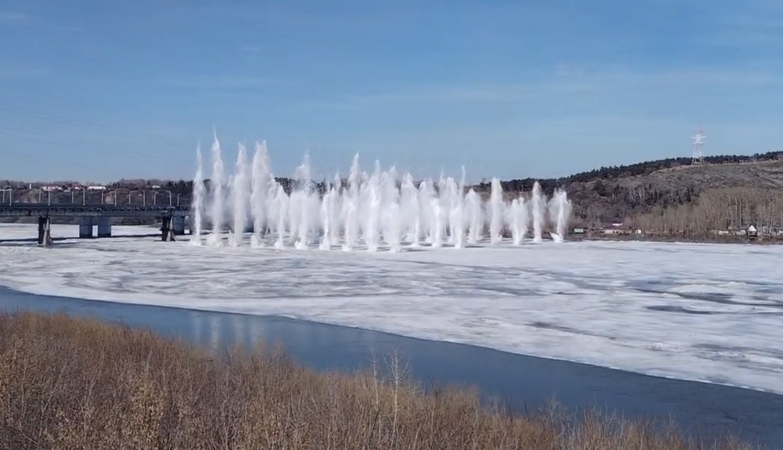 В Кемерове сняли на камеру момент подрыва льда на реке. За процессом наблюдали сотни горожан.