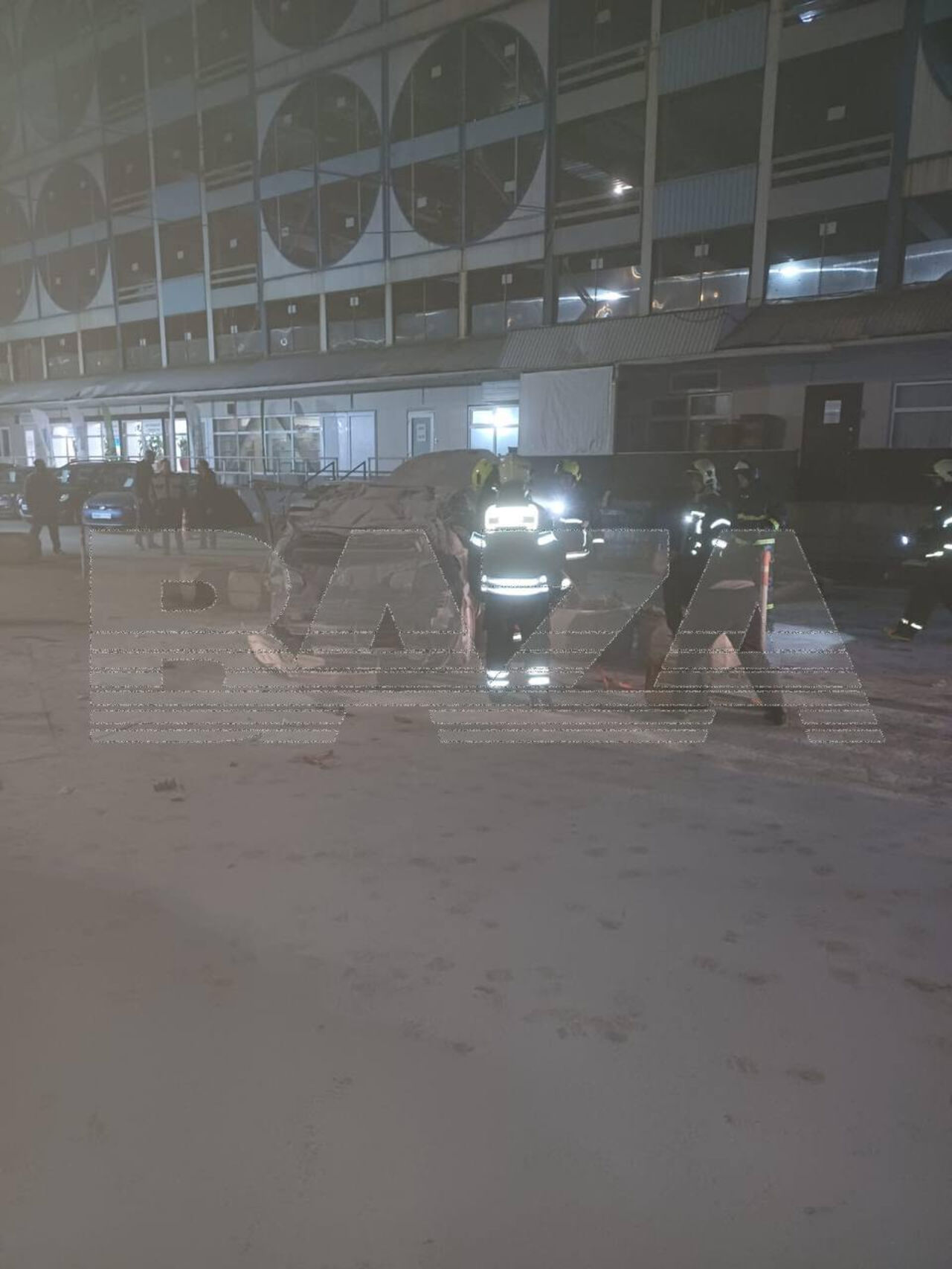 По предварительным данным, автомобилем управляла пожилая женщина – она сдавала назад и, не справившись с управлением, пробила ограждение в стене парковки и сорвалась вниз. Предполагается, что водитель могла перепутать педали.