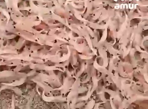 В Сети появились кадры, снятые на пляже около села Витязь, Хасанский район Приморского края. Местный житель заметил, что берег усыпан мертвыми креветками. Ракообразные лежат около воды, образуя своеобразную каемку.