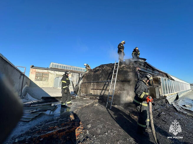 В Новосибирске загорелось производственное здание, когда в нем находились сотни людей. Огонь распространился на 180 квадратных метров.