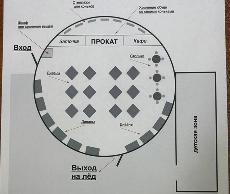 Мужчина рассказал, что подобные проекты были реализованы в нескольких городах. Купол позволяет сделать большое помещение для переобувания и хранения обуви, а также организовать пункт заточки коньков. Кроме того, в куполе можно разместить кафе, где посетители смогут отдохнуть и перекусить после активного отдыха.