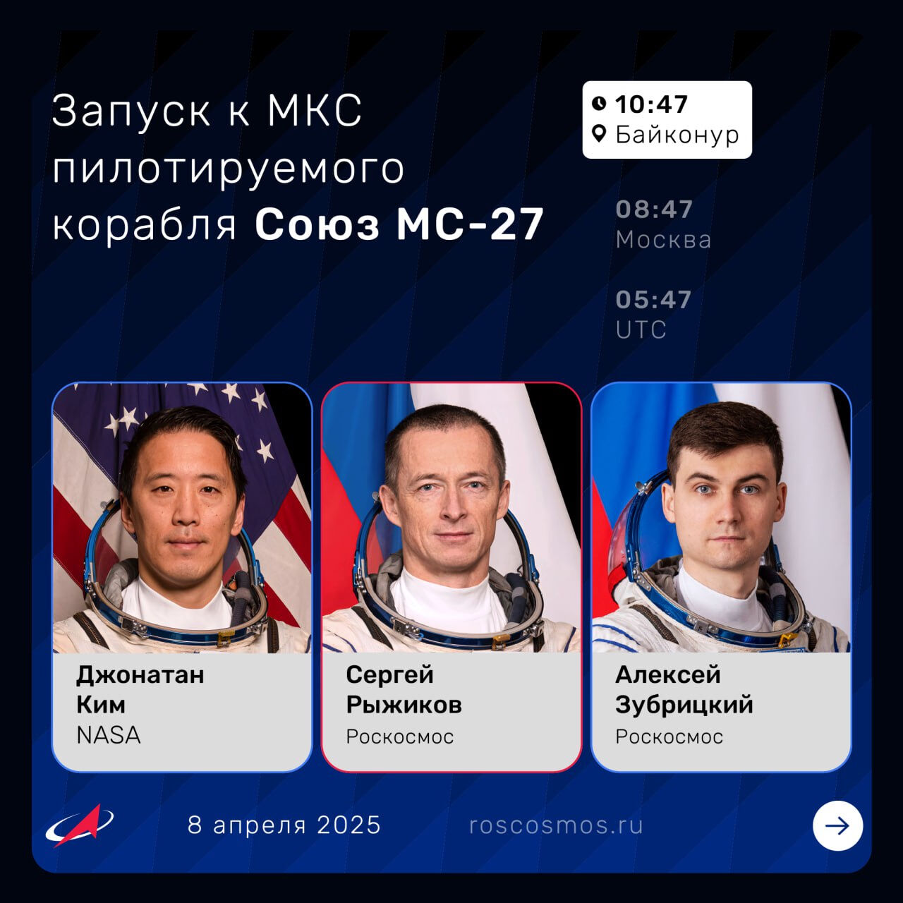 Во вторник, 8 апреля, с крупнейшего в мире космодрома "Байконур" вылетел пилотируемый корабль "Союз МС-27". Он направился на МКС.