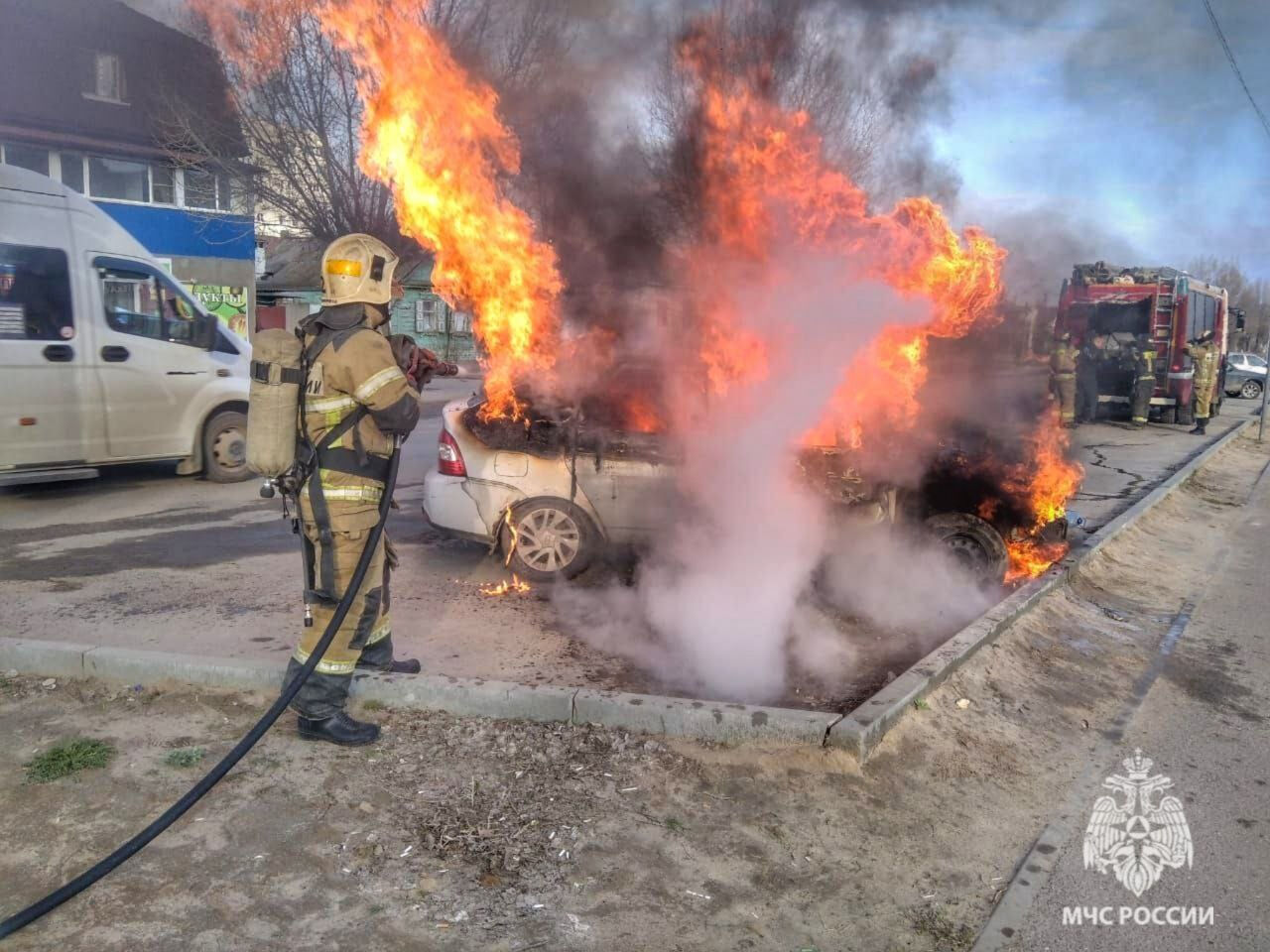 Пламя охватило машину на севере Волгограда. Пожар мог возникнуть из-за короткого замыкания электропроводки.