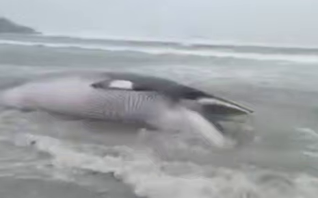 В Хасанском районе нашли тело кита на берегу мыса Молот. На опубликованных кадрах видно, как волны вертят труп и медленно выталкивают его из воды.