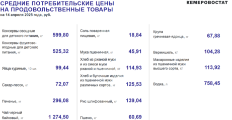 За прошедшую неделю в Кузбассе стали дороже такие продукты, как овощные детские консервы (+3,6%), репчатый лук (+3,5%), морковь (+3,2%), гречка (+2,7%), полукопченая и варено-копченая колбаса (+2,5%), огурцы (+2,3%), сообщает Кемеровостат.