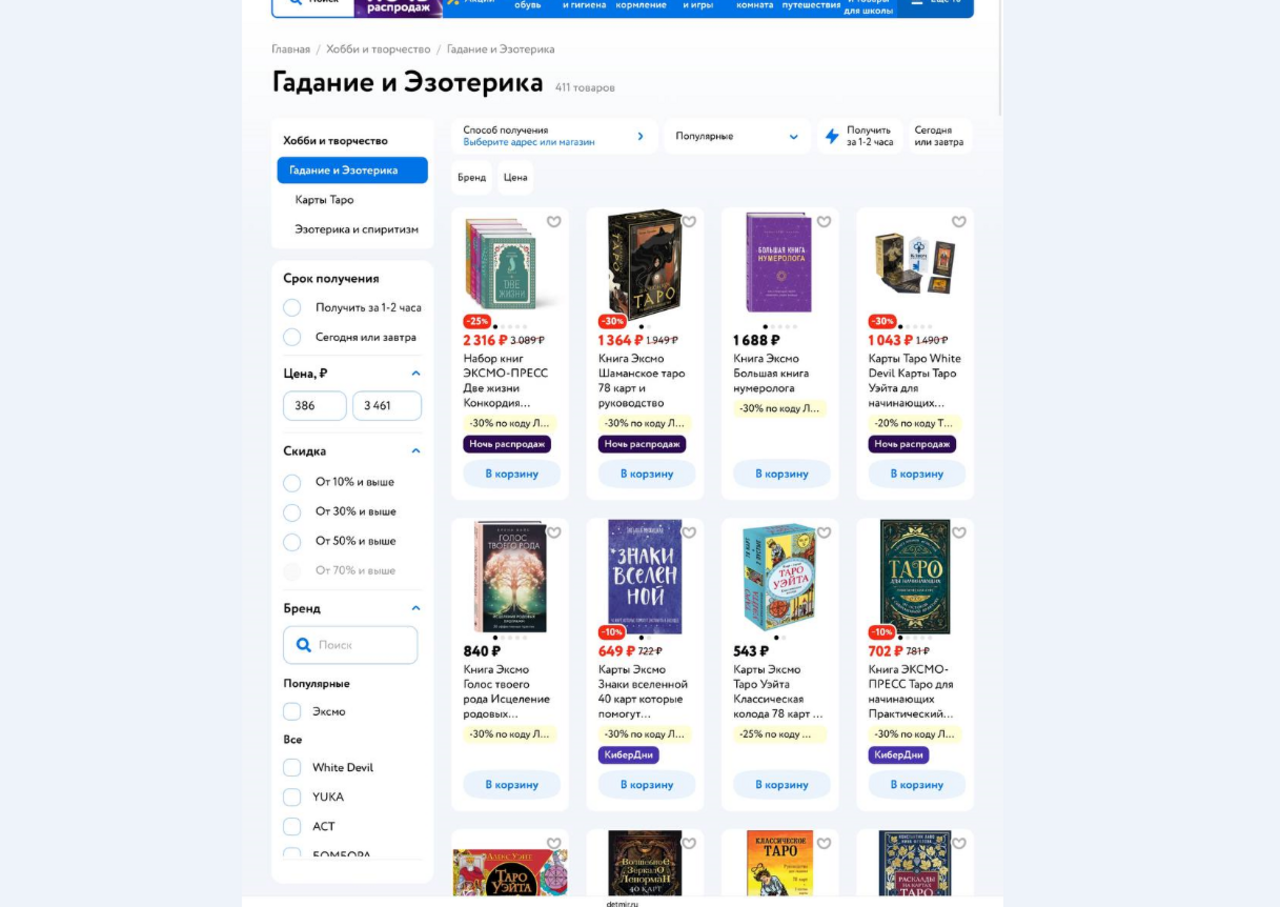 На опубликованном скриншоте видно, что товаров категории "Гадание и Эзотерика" в каталоге 441 штука.