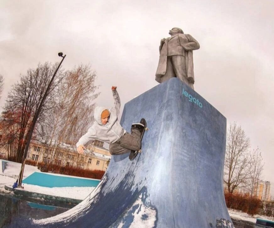 В городе Свердловской области скейтбордисты могут прокатиться по рампе, в которую было переделано основание памятнику Ленину.