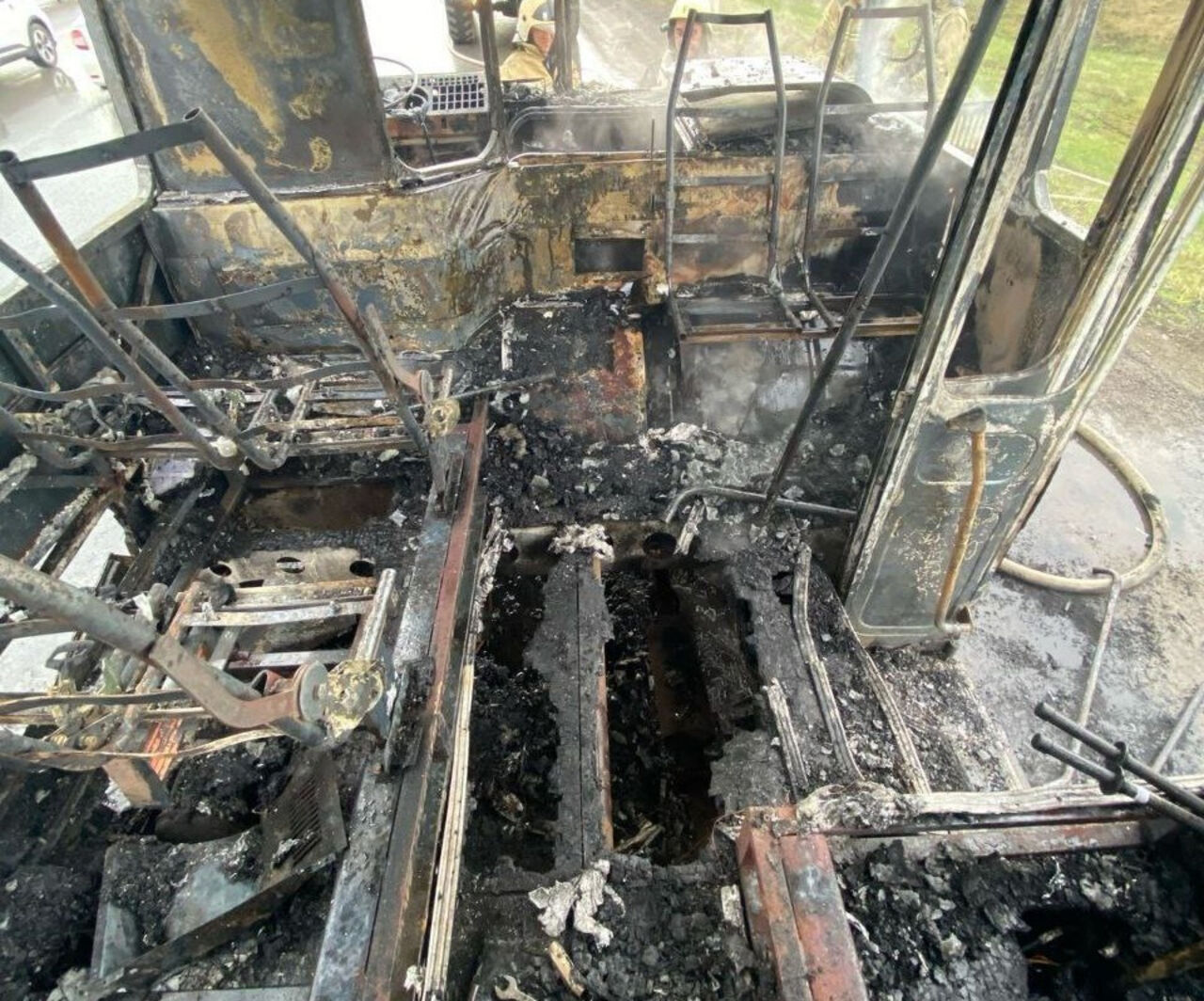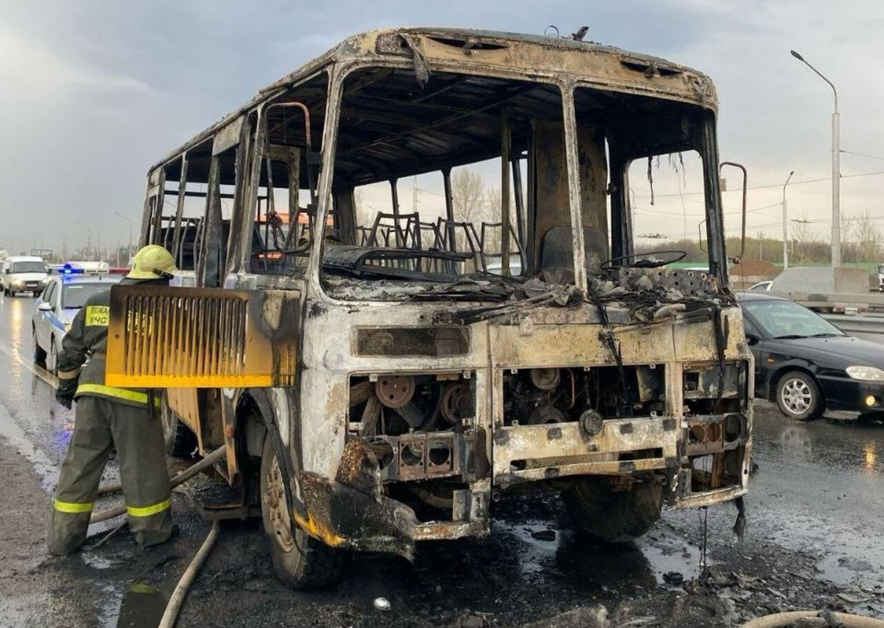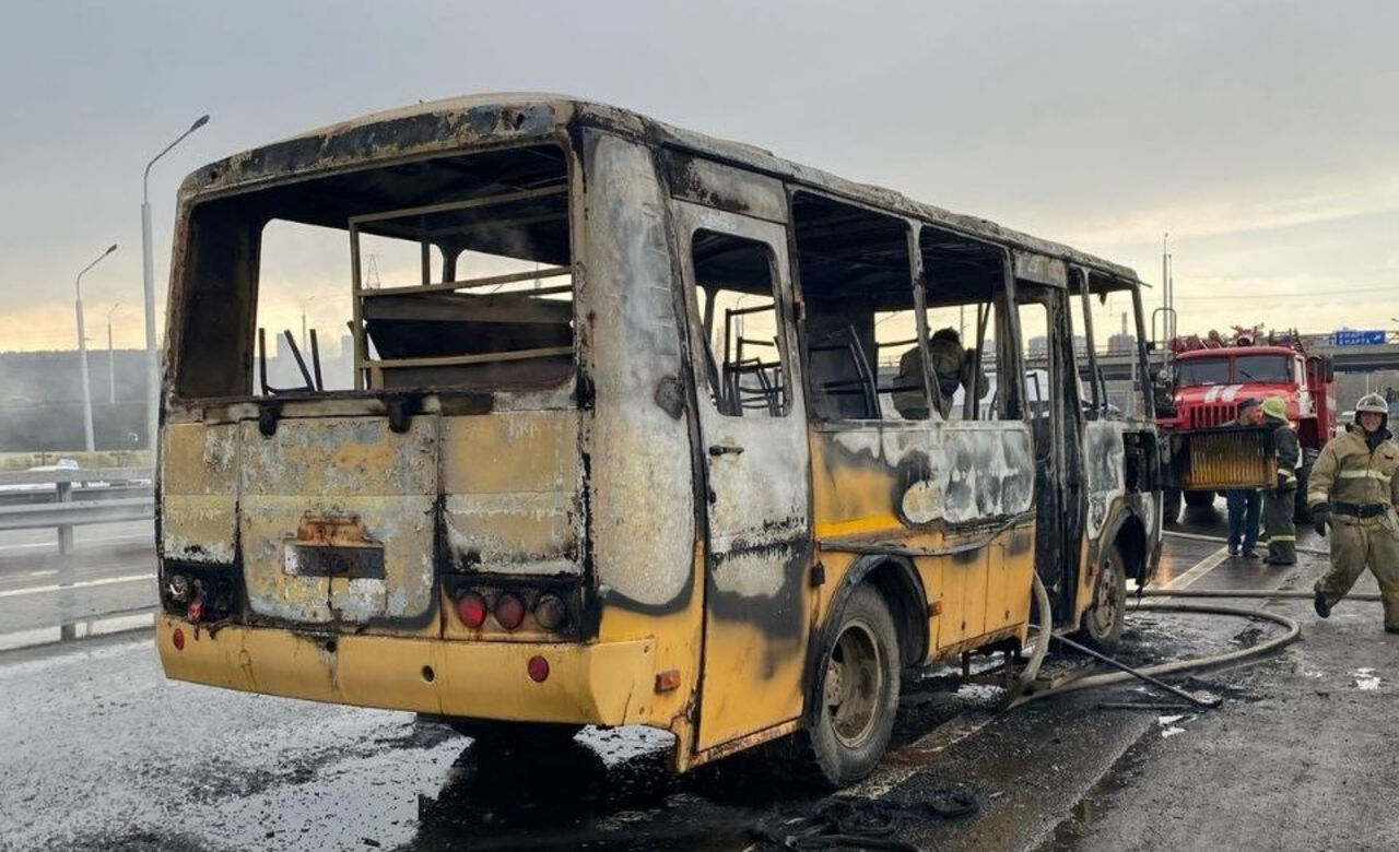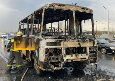 На опубликованных ведомством фотографиях видно, что в результате пожара транспортное средство получило серьезные повреждения. Уцелели лишь металлические конструкции, которые служат каркасом автобуса.