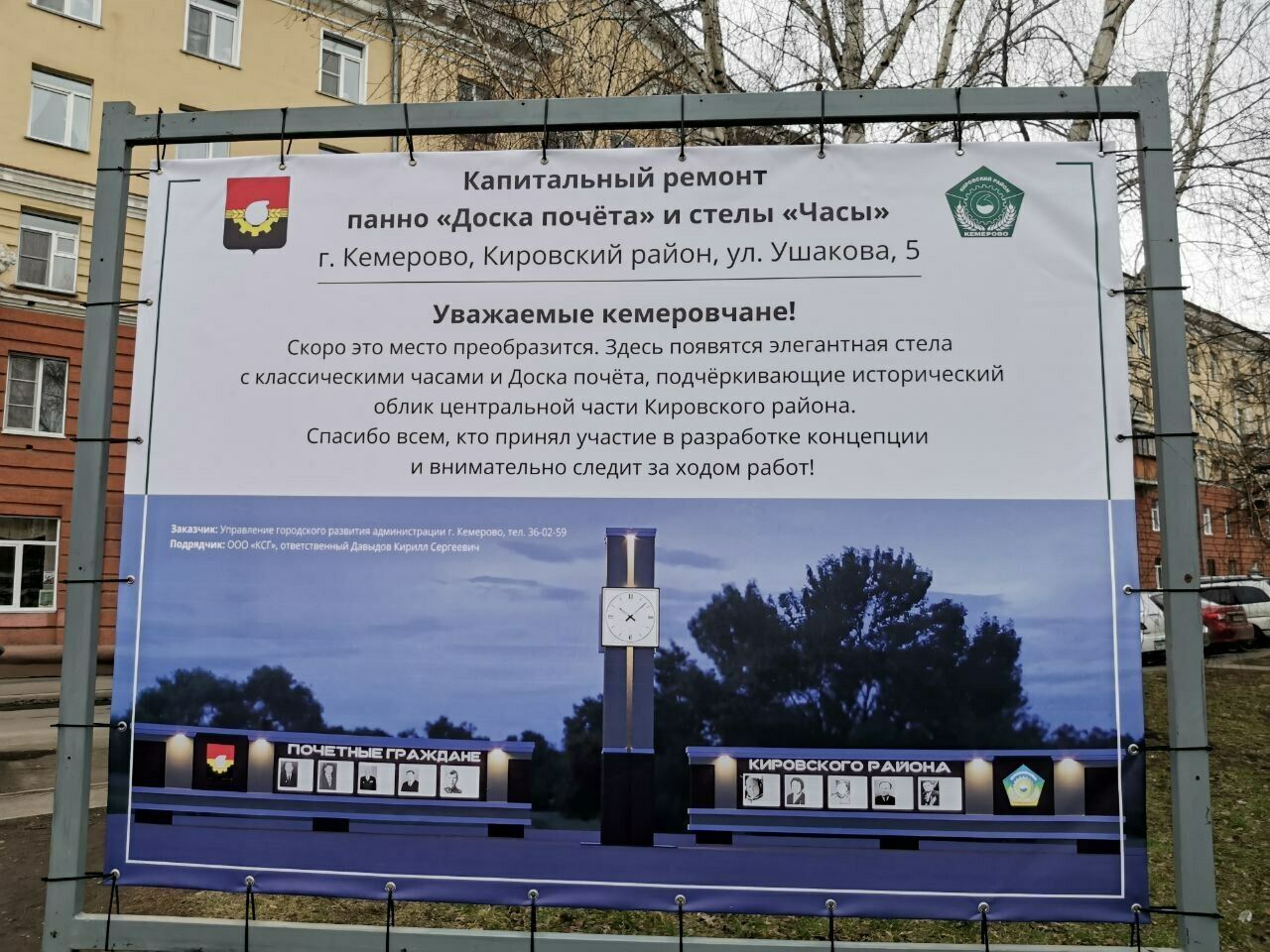 В Кировском районе Кемерова появится стела с часами и большая Доска почета.