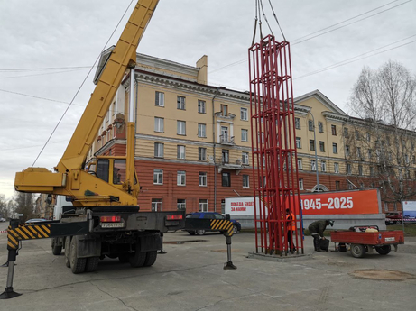 Как рассказал мэр города Дмитрий Анисимов, рабочие сделали бетонное основание и уже 23 апреля установили на него металлический каркас.