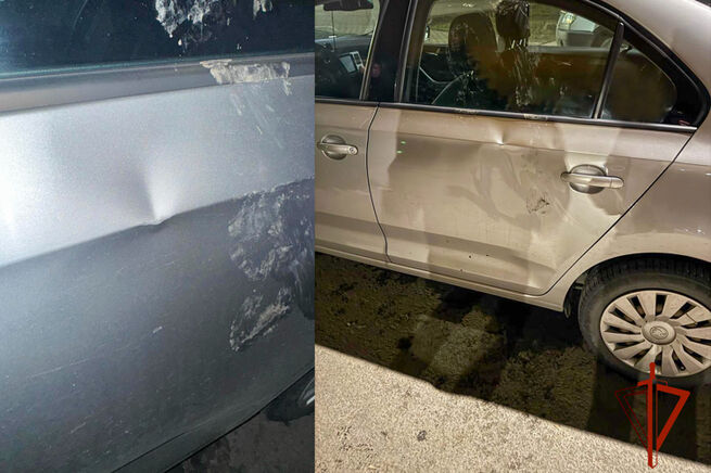 Росгвардейцы прибыли на место происшествия и увидели машину Skoda Rapid с поврежденной дверью – на ней была вмятина.