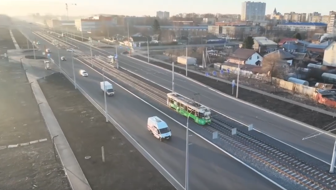 Первый трамвай, который вышел на линию, сняли с высоты птичьего полета. Видео появилось в Telegram-канале главы города.