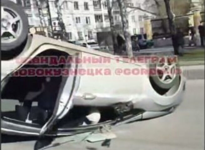 В Новокузнецке недалеко от горбольницы произошла серьезная авария, в результате которой машина оказалась лежащей на крыше.