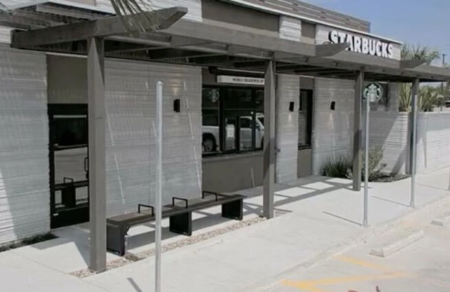 Крупнейшая компания Starbucks сообщила об открытии новой кофейни в штате Техас. Особенность этого заведения в том, что оно полностью напечатано на 3D-принтере. Стены кофейни напечатали из бетона в виде небольших секций, между которыми расположились окна и двери. Все элементы оформления, в том числе навес над зоной выдачи заказов и вывеска, тоже были сделаны с помощью принтера.
