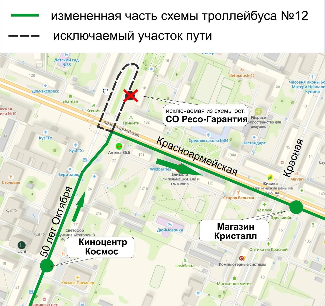 Кроме того, троллейбус №12, следуя от остановки "Железнодорожный вокзал", больше не будет останавливаться на остановке "Страховое общество "Ресо-Гарантия".
