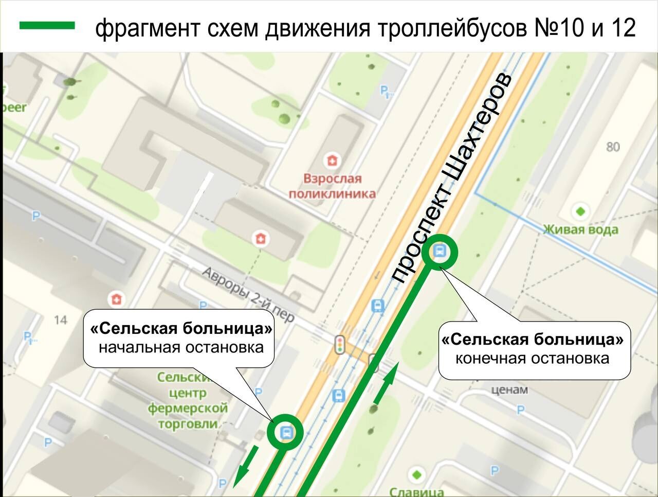 В кемеровской администрации сообщили, что с 1 мая будут изменены схемы движения троллейбусов № 10 "Драмтеатр – "Сельская больница" и № 12 "Железнодорожный вокзал – "Сельская больница".