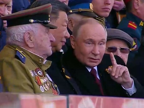На трибунах также заметили Путина, ведущего беседу с главой Китая Си Цзиньпином. Среди зрителей расположились военные из КНДР.