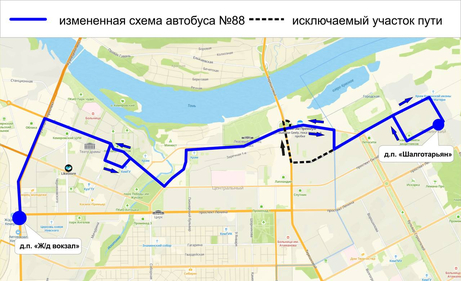 Так, автобусы по маршруту № 88 при следовании от д/п "Шалготарьян" к д/п "Железнодорожный вокзал" проследуют по проспектам Октябрьский, Ленинградский, Московский, улице Волгоградской, проспекту Притомскому, Университетскому мосту, проспектам Советскому и Кузнецкому. А при следовании от д/п "Железнодорожный вокзал" к д/п "Шалготарьян" маршрут пройдет по проспектам Кузнецкому и Советскому, улицам 50 лет Октября, Васильева, Красной, снова по проспекту Советскому, далее через Университетский мост, по проспекту Притомскому, улице Волгоградской, проспектам Московскому и Комсомольскому.