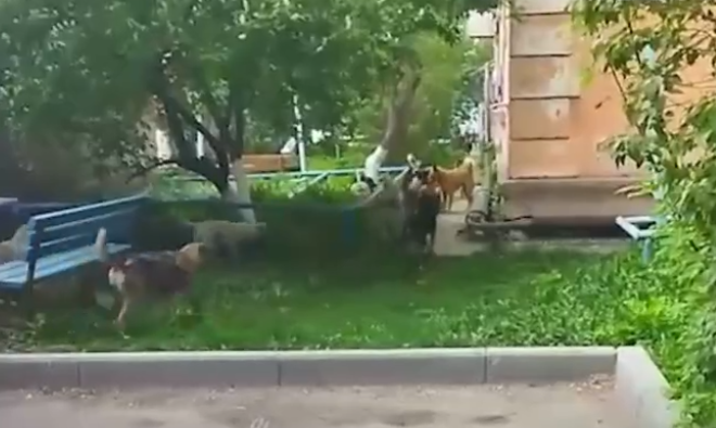 В Ленинске-Кузнецком на улице Кирова, 31 поселилась стая злобных собак, которых подкармливает сердобольная старушка, сообщает Mash Siberia со слов подписчиков.